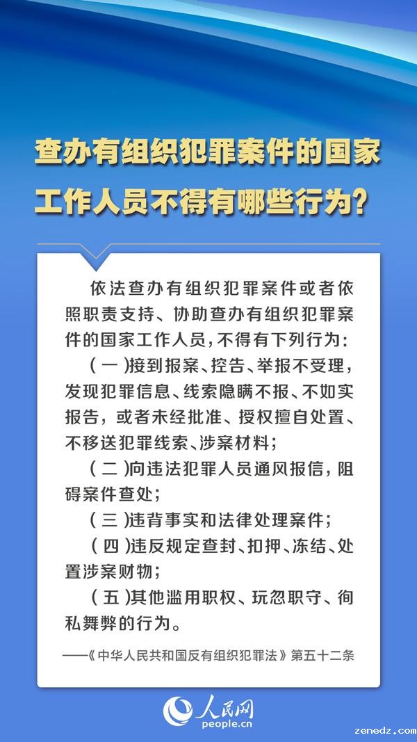 第五十二条 依法查办有组织犯罪案件或者依照职责支持、协助查办有组织犯罪案件的国家工作人员,不得有下列行为: