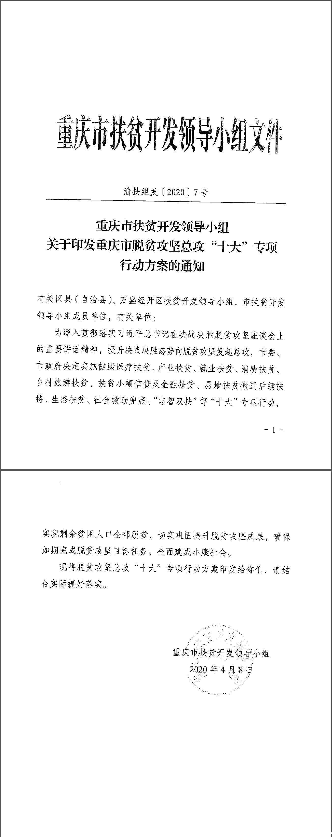 关于印发重庆市脱贫攻坚总攻“十大”专项行动方案的通知