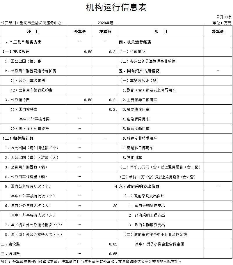 2020年度本单位因公出国(境)共计0个团组,0人;公务用车购置0 辆,公务车保有量为0辆;国内公务接待4批次20人,其中:国内外事接待0批次,0人;国(境)外公务接待0批次,0人。2020年本单位人均接待费103.10元,车均购置费0.00万元,车均维护费0.00万元。