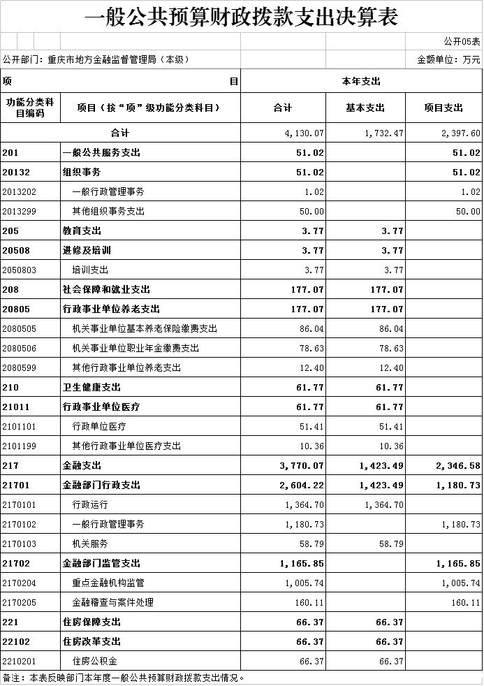 3.支出情况。2021年度支出合计4,139.31万元,较上年决算数增加92.21万元,增长2.3%,主要原因消化上年度结转重庆市地方综合监管平台建设项目资金。其中:基本支出1,738.71万元,占42%;项目支出2,400.60万元,占58%。
