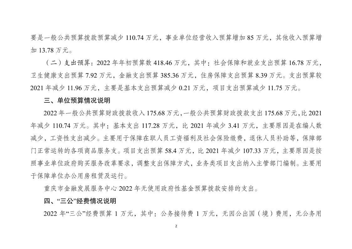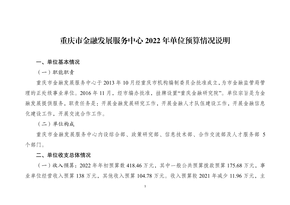 重庆市金融发展服务中心2022年部门预算情况说明