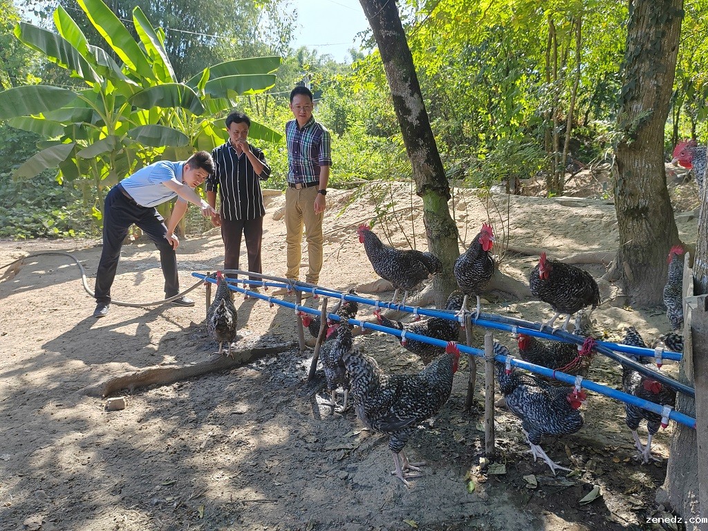 王灿和张卓亚查看智慧养鸡项目