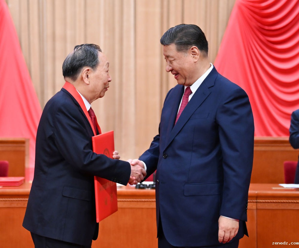 6月24日,全国科技大会、国家科学技术奖励大会和中国科学院第二十一次院士大会、中国工程院第十七次院士大会在北京人民大会堂隆重召开。中共中央总书记、国家主席、中央军委主席习近平向获得2023年度国家最高科学技术奖的清华大学薛其坤院士颁奖。新华社记者 谢环驰 摄